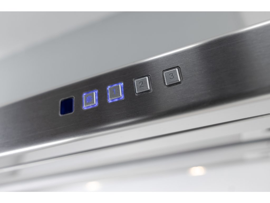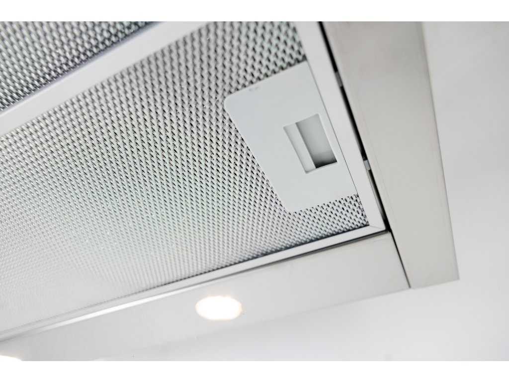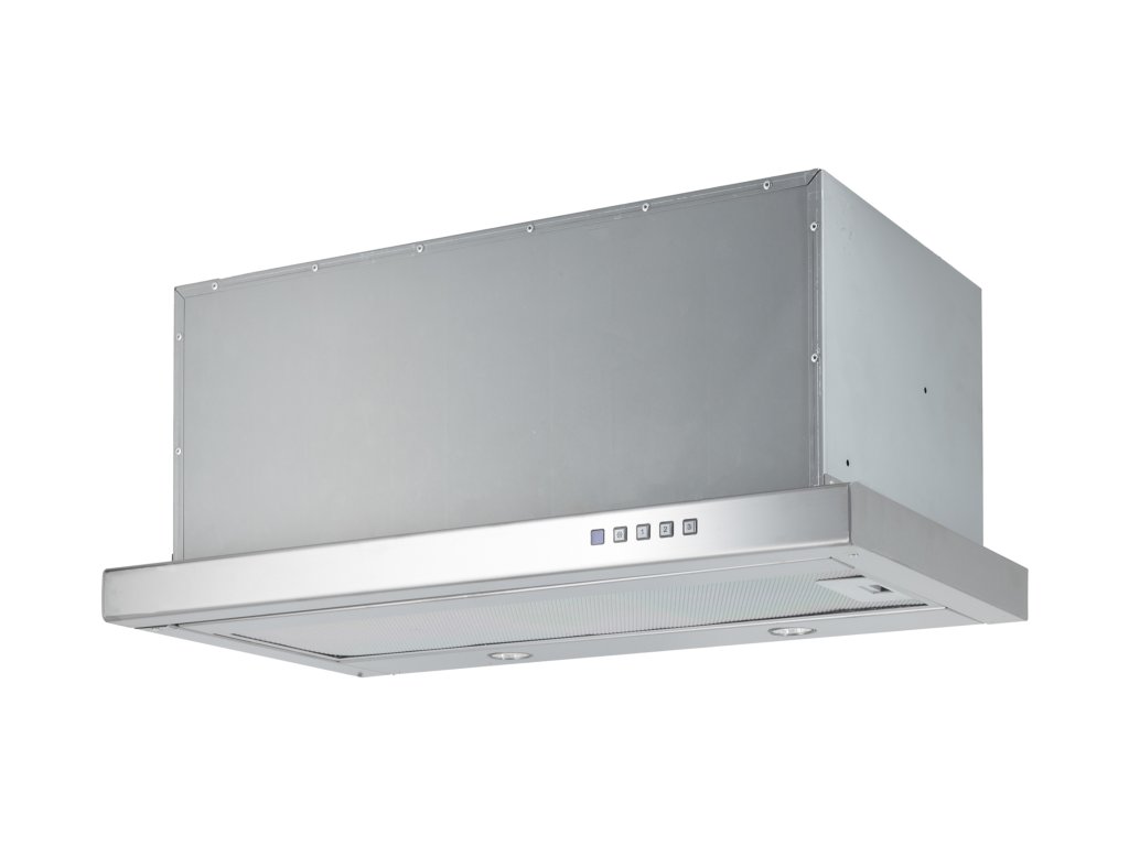 Vestavná digestoř výsuvná, šíře 60 cm, nerez s nerez lištou (šedý korpus), max. výkon 692 m³/h (5 Pa), hlučnost Lw 50 – 70 dB(A), 3 rychlosti, odsávací jednotky mají individuálně vyvažovanou turbínu, motory jsou opatřené vratnými tepelnými pojistkami (při přetížení motoru vypne, po jeho vychladnutí opět sepne), kovové sendvičové tukové filtry, které lze mýt v myčce, možnost práce v odtahovém i recirkulačním režimu, Výbava: úsporné LED osvětlení 2 × 2 W, elektronické ovládání s doběhovým časovačem, zdarma dálkový ovladač i s bateriemi, zdarma redukce na 120 mm a zpětná klapka, Benefity: používání dálkového ovládání usnadňuje údržbu digestoře (méně otisků na digestoři = snazší čištění), ovladač je opatřený magnetem, lze jej přichytit třeba na dveře lednice (může být snadno po ruce, nikam nezapadne)