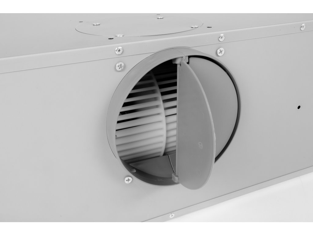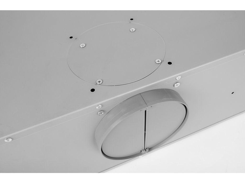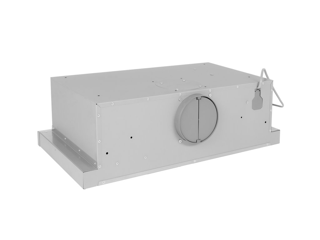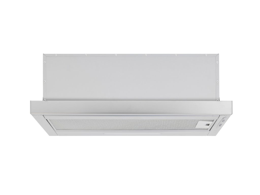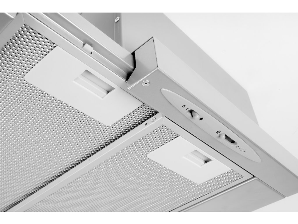 Vestavná digestoř výsuvná, jediná na trhu s odtahem dozadu nebo nahoru (oba 120 mm), šíře 50 cm, bílá s nerez lištou, max. výkon 338 m³/h (15 Pa), hlučnost Lw 56 – 71 dB(A), 3 rychlosti, odsávací jednotky mají individuálně vyvažovanou turbínu, motory jsou opatřené vratnými tepelnými pojistkami (při přetížení motoru vypne, po jeho vychladnutí opět sepne), mechanické posuvné ovládání, kovové sendvičové tukové filtry, které lze mýt v myčce, možnost práce v odtahovém i recirkulačním režimu, Výbava: úsporné LED osvětlení 1 × 2,8 W (LED pásek), zdarma zpětná klapka