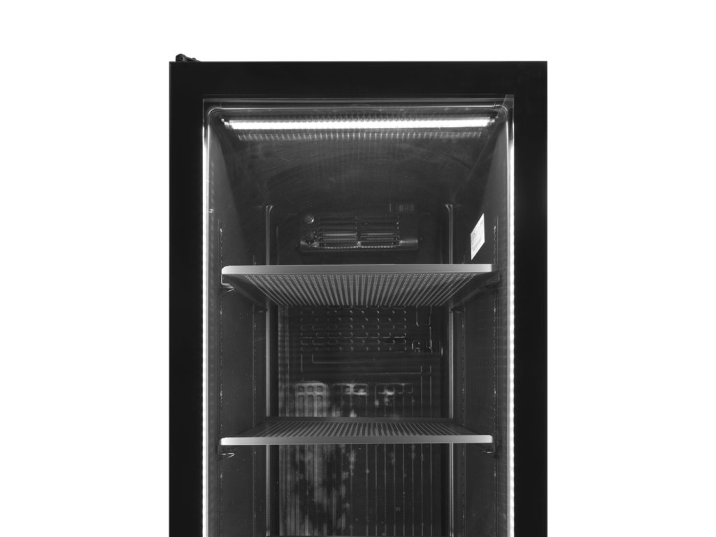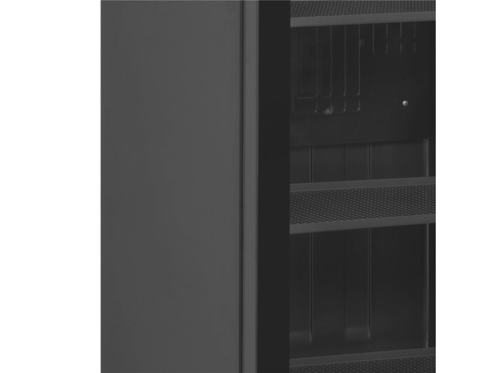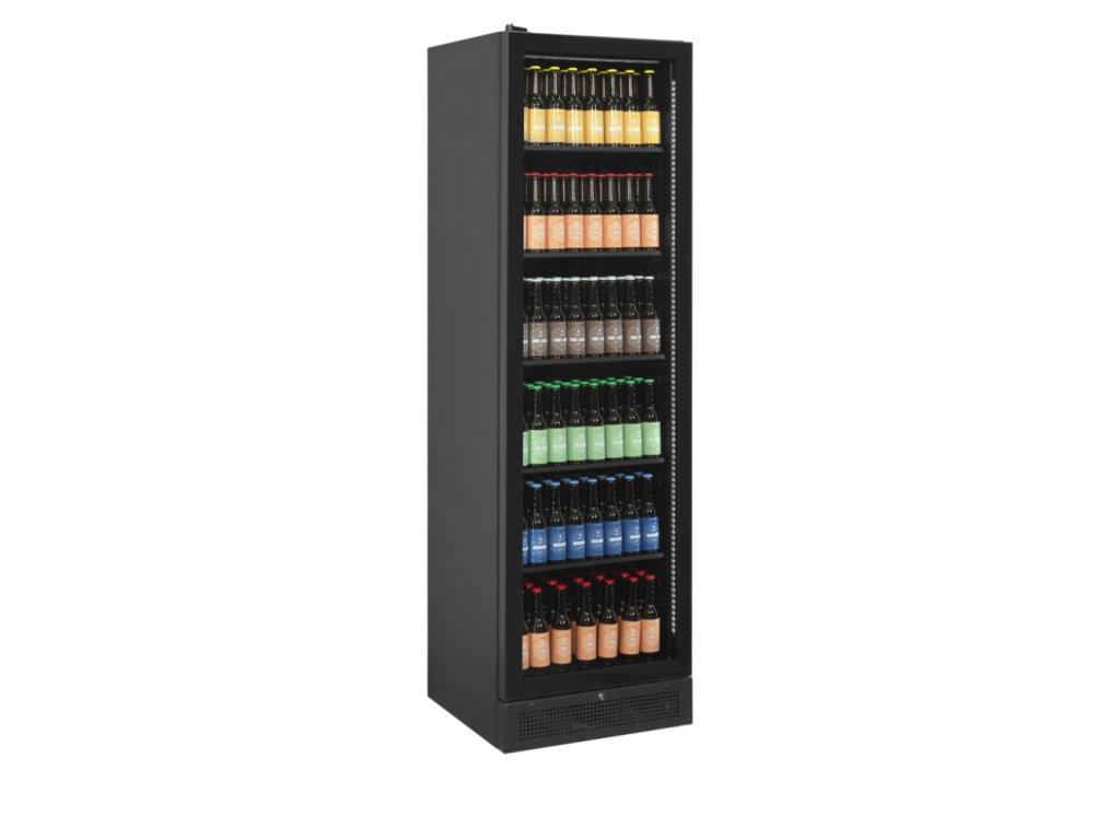Chladicí skříň SCU1425 FRAMELESS L/H v černé barvě je ideální pro vystavení výrobků. Černý exteriér a interiér jim dodávají elegantní nádech. Chladicí skříň má mimořádně vysoké bezrámové prosklené dveře, nastavitelné police a vnitřní osvětlení LED pro optimální prezentaci výrobků. Chladicí systém s ventilátorem zajišťuje rovnoměrné chlazení celé skříně. Standardně se dodává s pravými nebo levými křídlovými dveřmi.