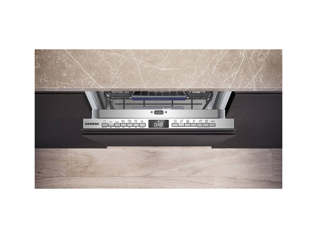 Vestavná myčka Siemens SR63EX25ME pro 10 sad nádobí s variabilními koši, tichým motorem, Home Connect, autoOpen a aquaStop ochranou.