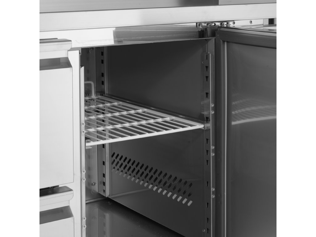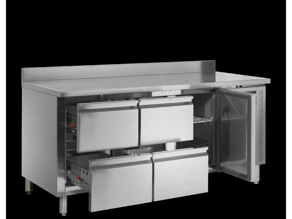Řada chladicích stolů CK z nerezové oceli SS304 je určena pro profesionální kuchyně, a proto má rozměry GN1/1. Stoly jsou k dispozici v několika velikostech a můžete si vybrat mezi plnými dvířky a zásuvkami. Dále máte výběr mezi modely s odnímatelnou horní deskou se zadní deskou, nebo bez ní. Všechny mají ventilované chlazení, které zajišťuje rovnoměrnou a stálou teplotu.