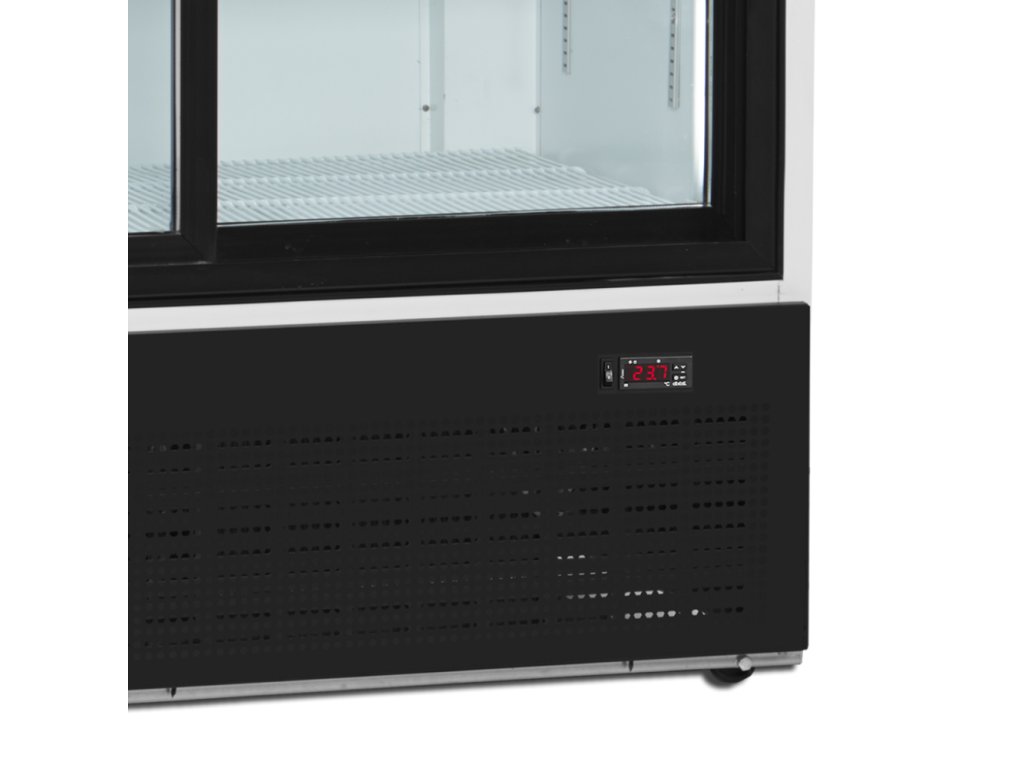Řada FS je bez světelného reklamního panelu v horní části skříně, a díky tomu je význačná maximální vnitřní výškou. Chladicí skříně FS jsou velmi praktické, jsou vhodné pro nápoje, mléčné výrobky (mléko, sýr atd.) a sendviče, takže jsou ideální pro supermarkety, obchody se smíšeným zbožím, obchody a kavárny. Mohou být vhodnout alternativou k velkým přístěnným vitrínám, pokud máte omezené prostorové možnosti. Tento model je standardní s bílým exteriérem a interiérem. Dodává se s 5 nastavitelnými bílými roštovými policemi a 2 samozavíracími posuvnými prosklenými dveřmi.