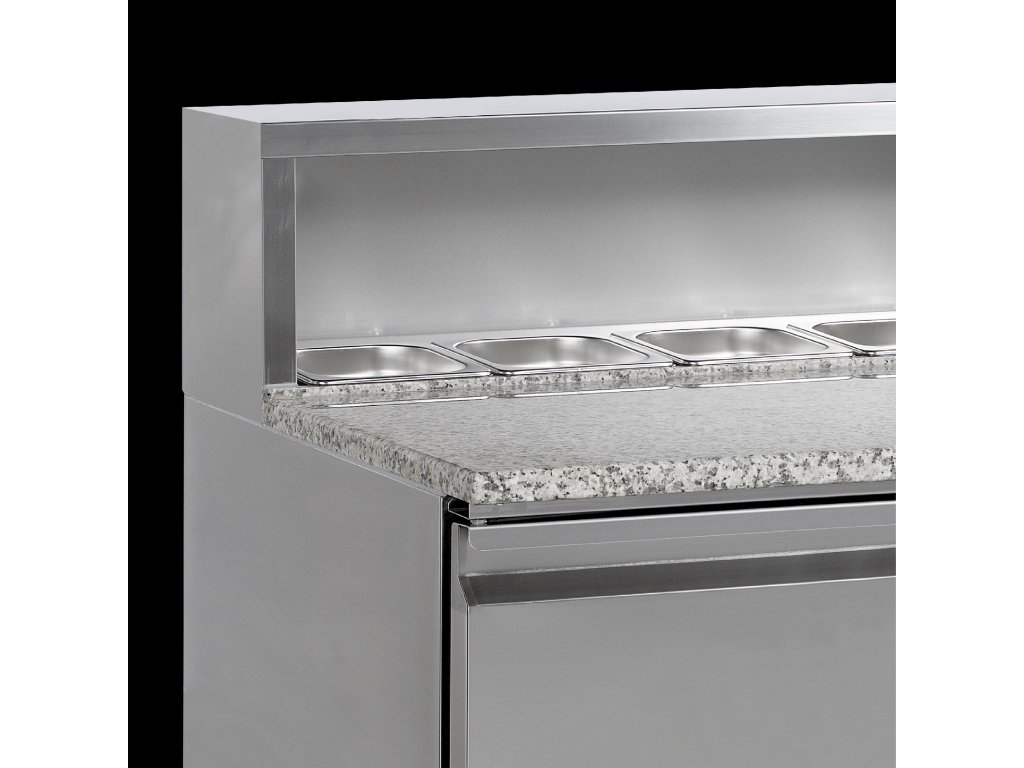 Řada PT chladicích pizza stolů je vyrobena z nerezové oceli SS304. Má žulovou desku, která je pro přípravu pizzy ideální, protože žula zůstává chladná a těsto se na ni méně lepí. Stoly jsou k dispozici v několika velikostech se 2 nebo 3 dvířky. Také je možné pořídit si přizpůsobenou variantu se zásuvkami. Ve vrchní části je možné vložit GN 1/6 x 5 ks pro model PT 920 a 8 ks GN 1/6 pro model PT 930. GN nejsou součástí.