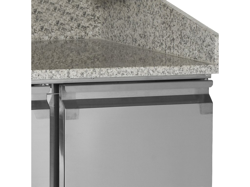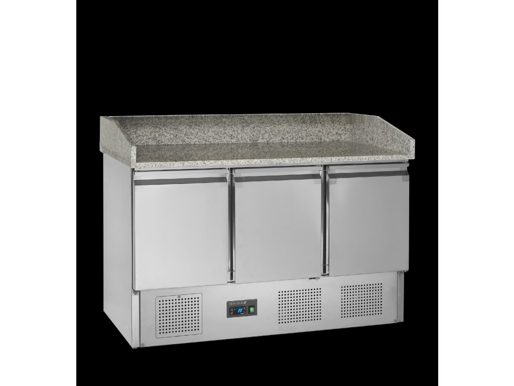 Řada PT chladicích pizza stolů je vyrobena z nerezové oceli SS304. Má žulovou desku, která je pro přípravu pizzy ideální, protože žula zůstává chladná a těsto se na ni méně lepí. Stoly jsou k dispozici v několika velikostech se 2 nebo 3 dvířky. Také je možné pořídit si přizpůsobenou variantu se zásuvkami. Dodává se s horní jednotkou pro gastronádoby GN nebo bez ní – horní jednotku lze dodatečně namontovat.