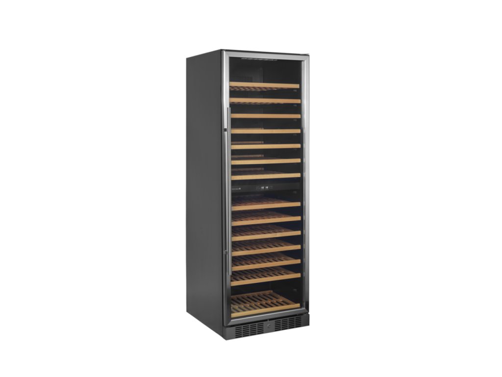 Vinotéky řady TFW-2S s prvky z nerezové oceli nabízejí moderní řešení pro vystavování a skladování lahví s vínem. Vinotéka má černý vnější povrch a rám a madlo…