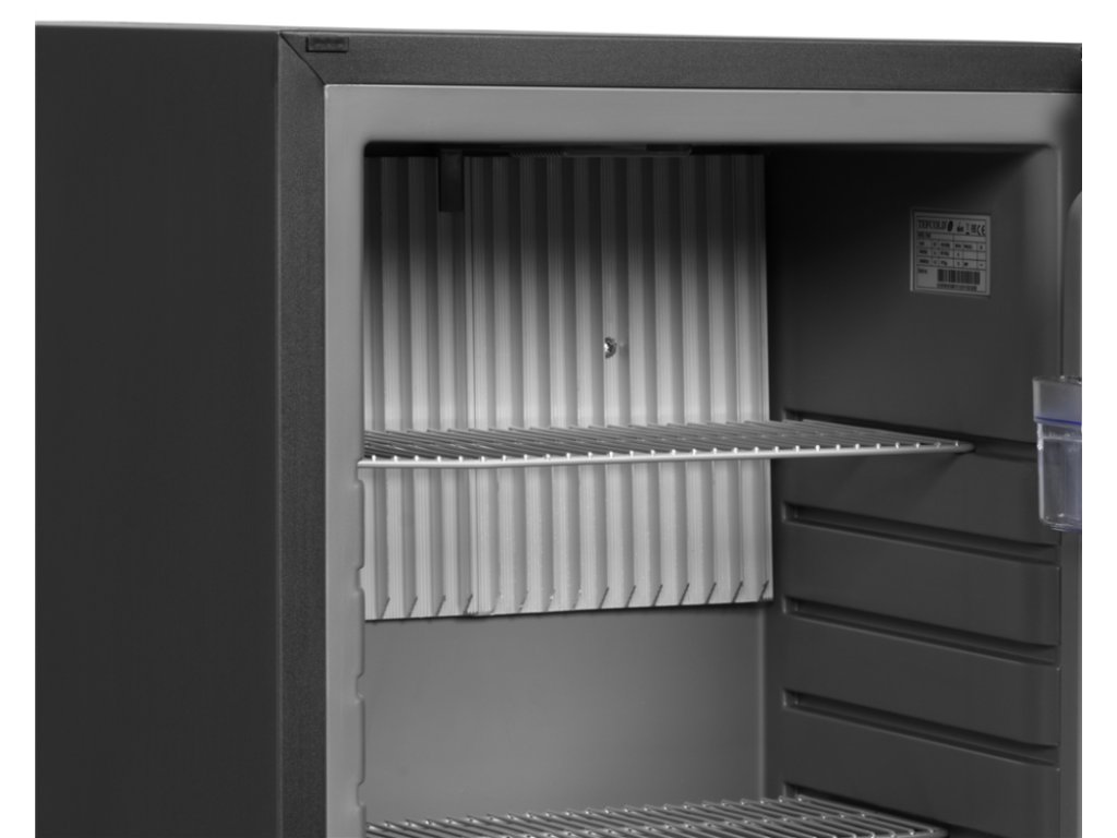 Díky minibaru TM se vaši hosté mohou vždy dobře vyspat. Má tichý chod absorpčního chladicího systému klasifikovaný jako 0 dB (A), což znamená, že nikoho nebude rušit. Minibar má elegantní design s černým vnějším povrchem a antracitovým interiérem, který udělá špičkový dojem. Minibar je vybaven vnitřním LED osvětlením, které se rozsvítí při otevření dveří.