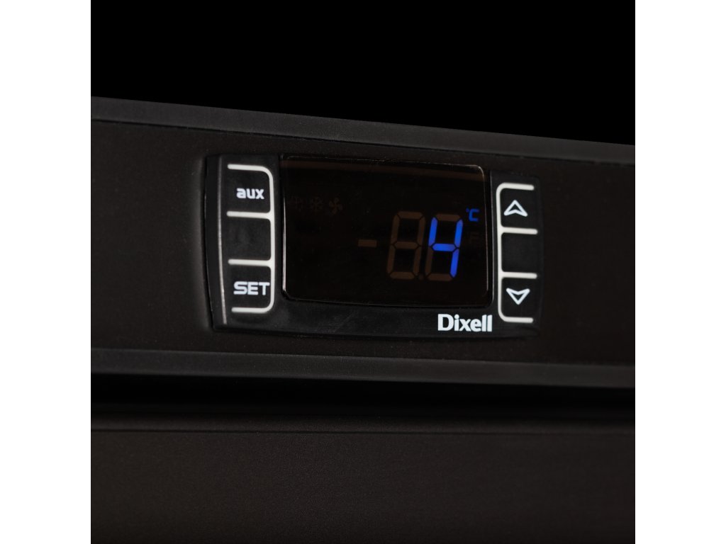 Řada mrazicích vitrín UF400VG je k dispozici v černé nebo bílé barvě s rámem dveří z nerezové oceli. Je vybavena ventilovaným chlazením, automatickým odmrazováním a digitálním termostatem. Díky vyhřívaným skleněným dveřím, nastavitelným policím a LED osvětlení interiéru nabízí skvělou prezentaci vašich mražených výrobků.