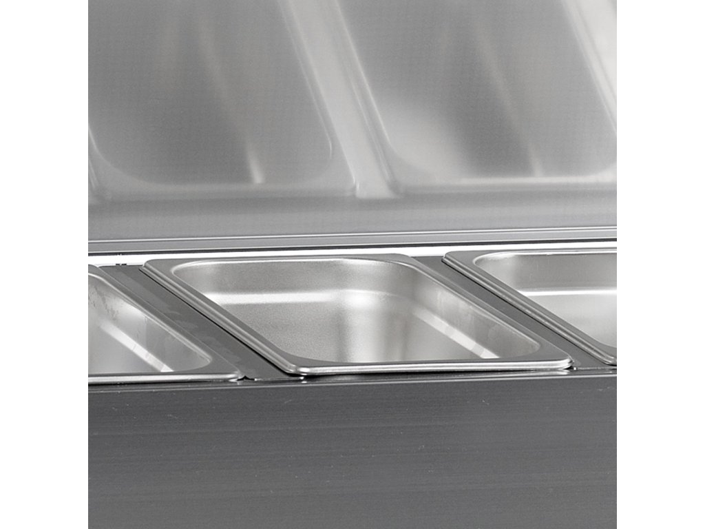 Řada chladicích nástaveb VK33 S/S LID je skvělým doplňkem gastro pultů, protože vám umožňuje mít na dosah vše, co potřebujete k přípravě jídla. Je vhodná pro gastronádoby GN 1/4 x 150 mm (nejsou součástí).