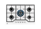 Plynová varná deska z řady Mythos. Provedení tvrzené černé sklo. 5 Plynových hořáků (1× Trojkorunka). Knoflíkové ovládání. Litinové rošty.