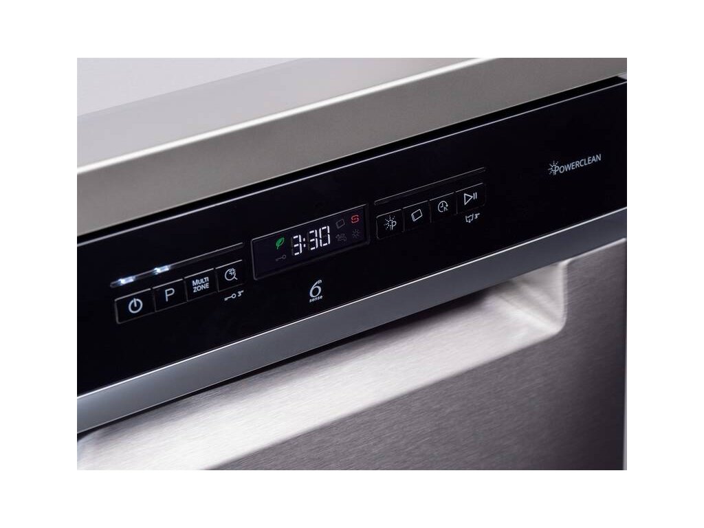 Whirlpool WSFO 3O34 PF X – úzká, tichá a spolehlivá myčka s chytrým 6th Sense řízení a úsporným provozem v energetické třídě D.