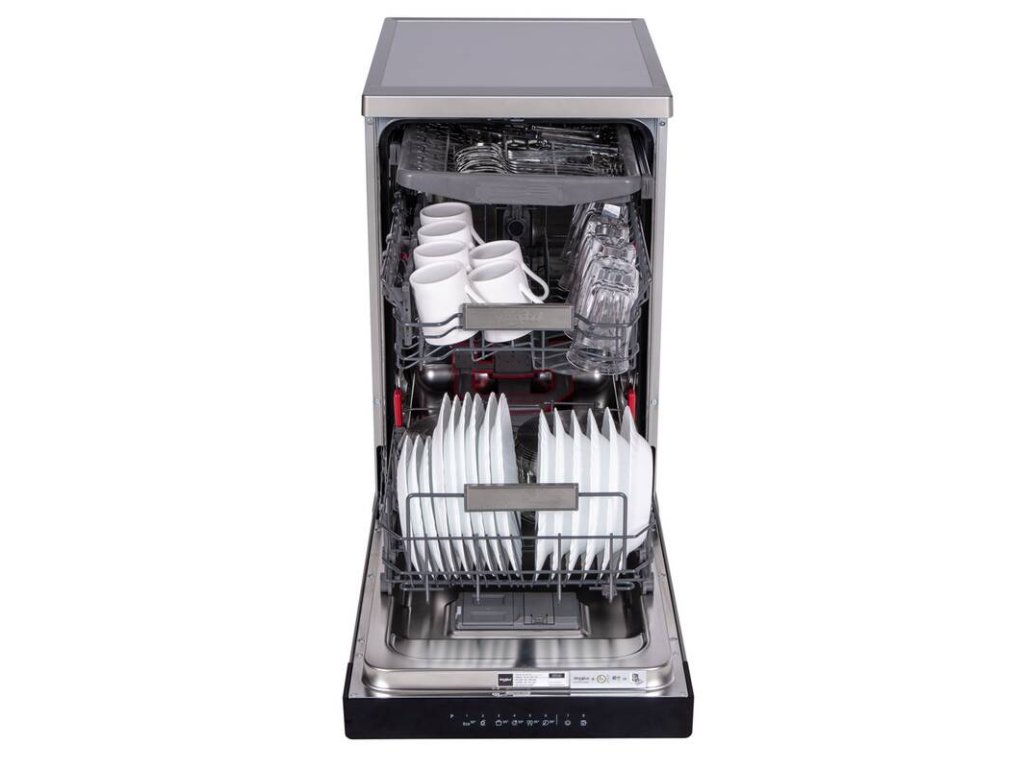 Whirlpool WSFO 3O34 PF X – volně stojící úzká myčka nádobí 45 cm se 6th Sense, 10 sadami, tichým chodem 44 dB, spotřebou 9 l a energetickou třídou D.